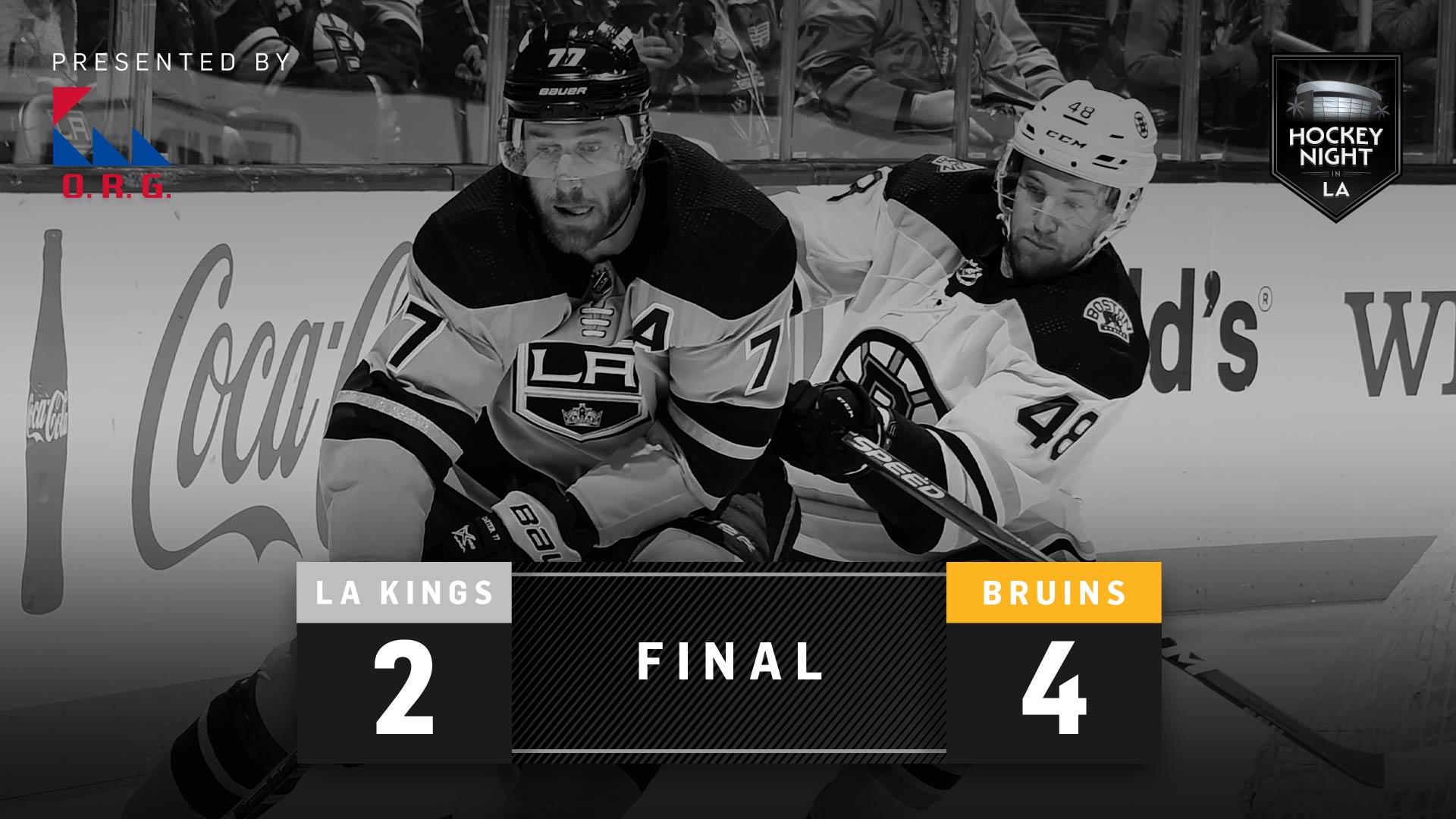 The Kings were playing flat throughout the 3rd period, and the team was playing with a lack of emotion and urgency. The Kings grabbed a goal back at the end of the period due to a nice rebound that was put home by Alex Iafallo. But the Bruins stormed back and grabbed two in less than a minute to finish off the Kings to win the game.